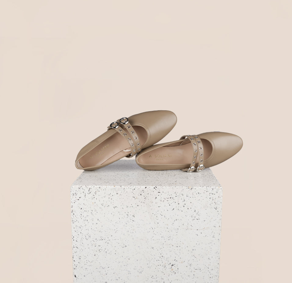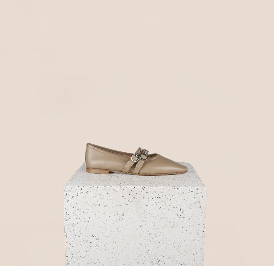 Como, our classic ballerina flat, has a longer toe box and a slim shape that elongates the legs to perfection. The low-stacked heel is comfortable for everyday wear, and a double buckle is the perfect addition for a stylish classic look.
