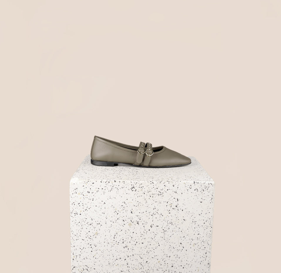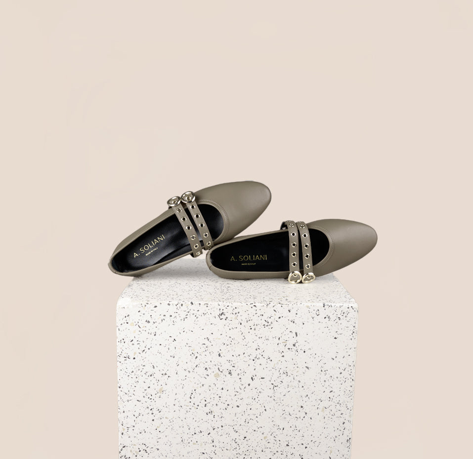 Como, our classic ballerina flat, has a longer toe box and a slim shape that elongates the legs to perfection. The low-stacked heel is comfortable for everyday wear, and a double buckle is the perfect addition for a stylish classic look.
