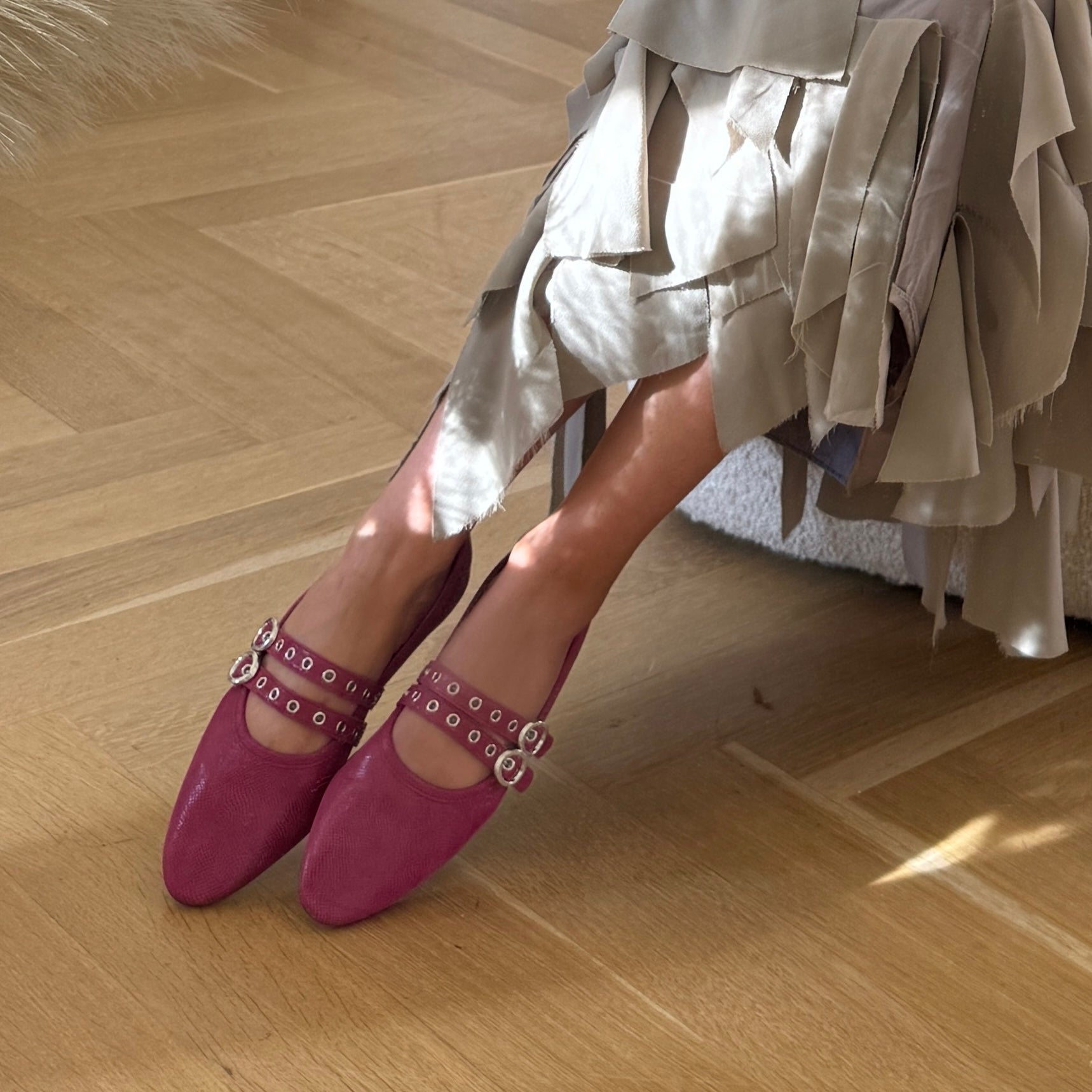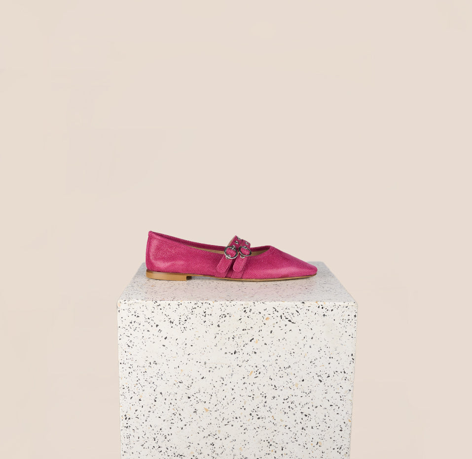Como, our classic ballerina flat, has a longer toe box and a slim shape that elongates the legs to perfection. The low-stacked heel is comfortable for everyday wear, and a double buckle is the perfect addition for a stylish classic look.