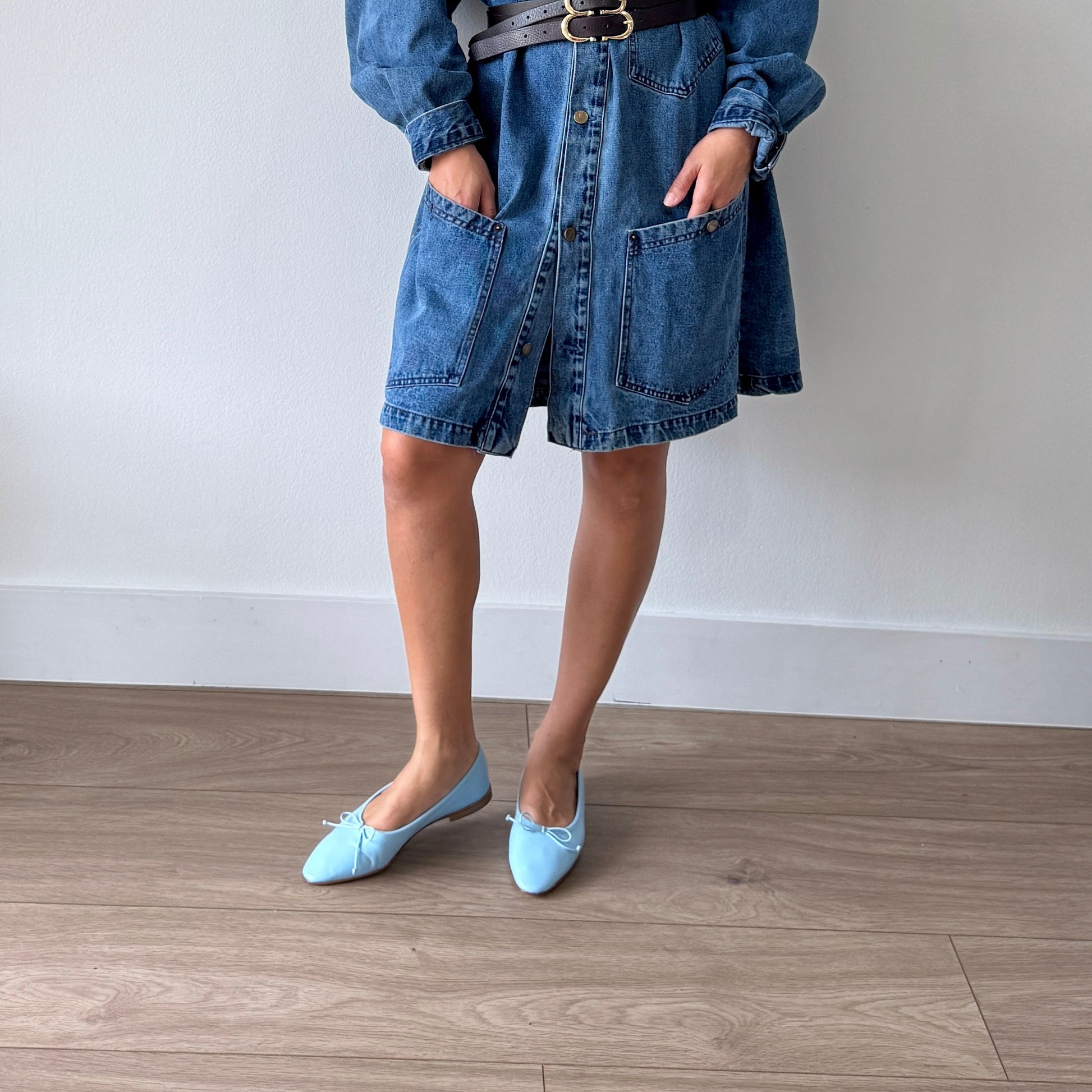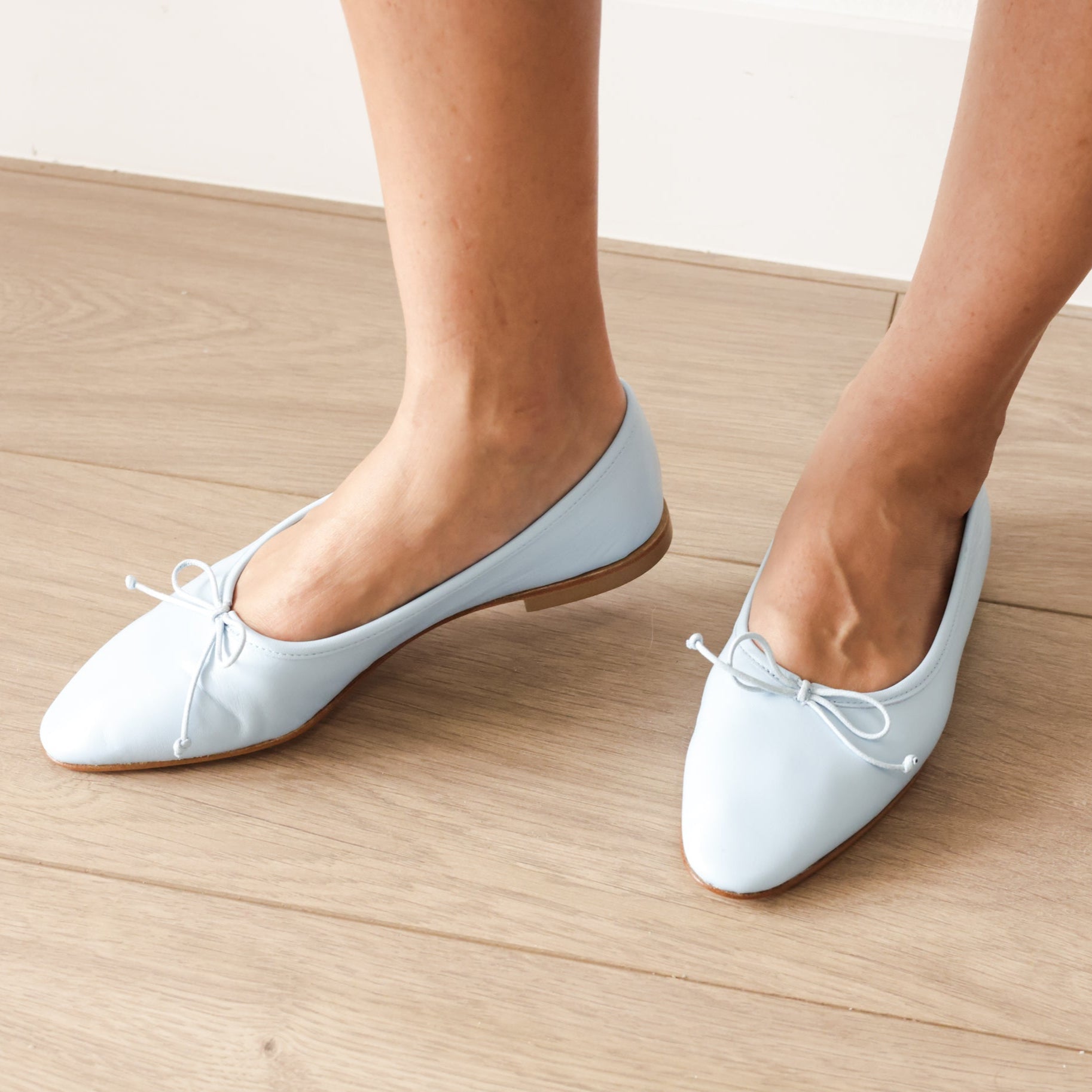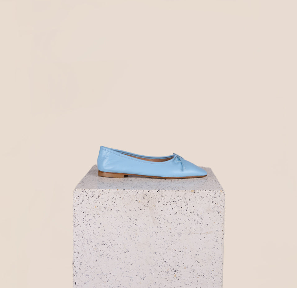 The Como, our new ballerina flat, has a longer toe box and a slim shape that elongate the legs to perfection. The low stacked heel is comfortable for everyday wear, and a cotton bow adds a pretty, feminine touch.