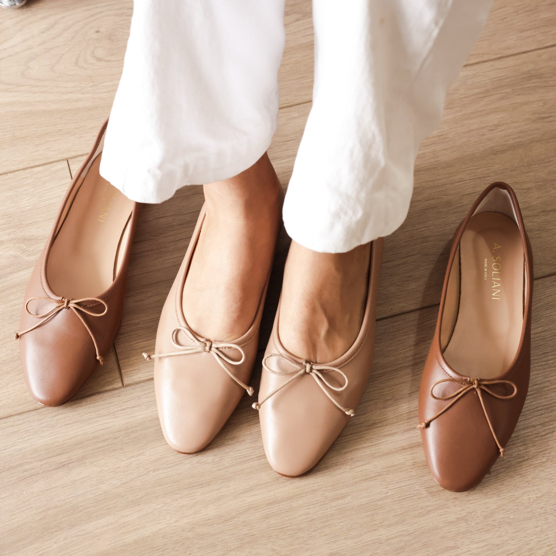 The Como, our new ballerina flat, has a longer toe box and a slim shape that elongate the legs to perfection. The low stacked heel is comfortable for everyday wear, and a cotton bow adds a pretty, feminine touch.