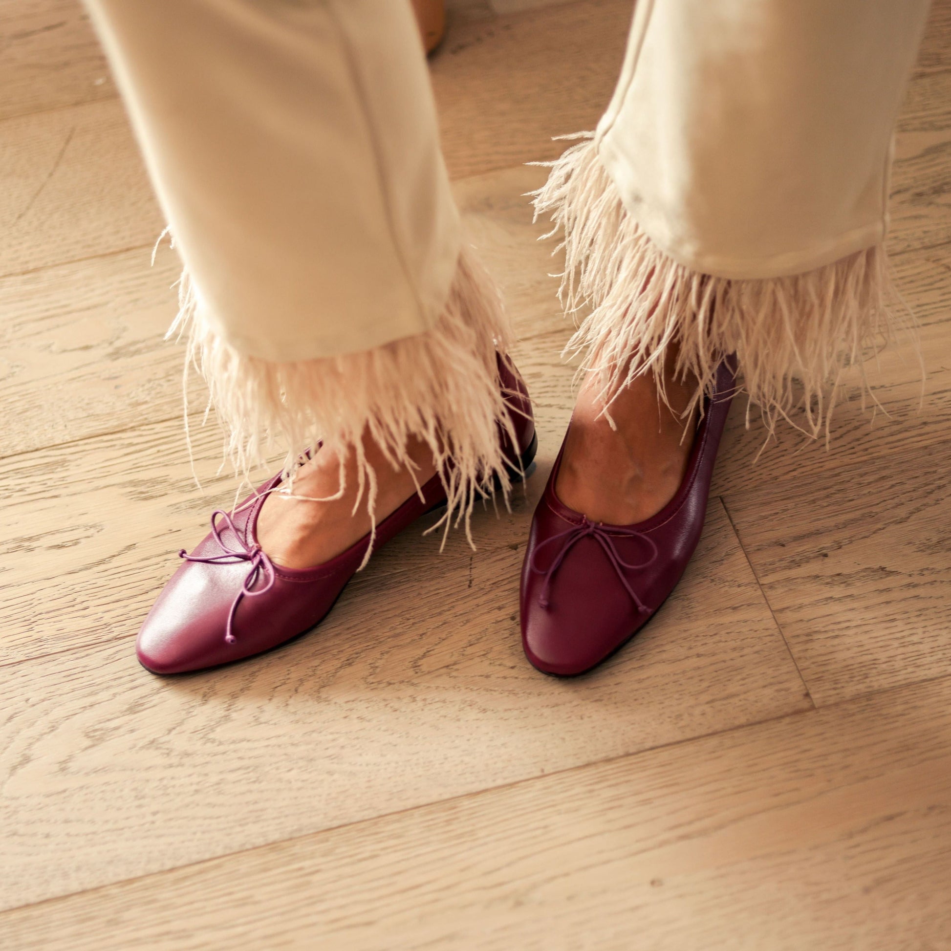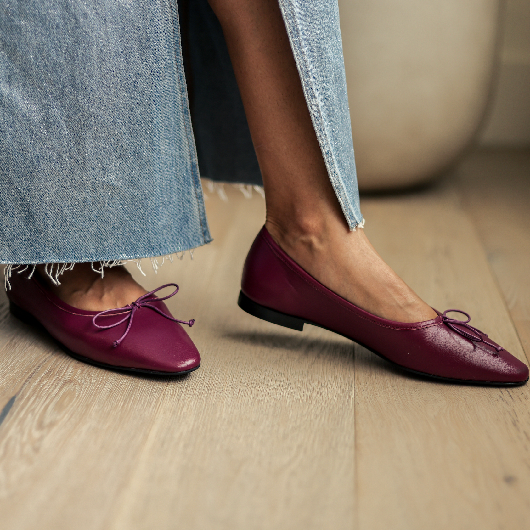 The Como, our new ballerina flat, has a longer toe box and a slim shape that elongate the legs to perfection. The low stacked heel is comfortable for everyday wear, and a cotton bow adds a pretty, feminine touch.