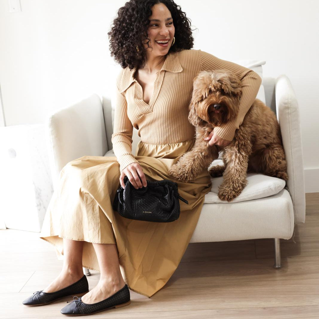 The Como, our new ballerina flat, has a longer toe box and a slim shape that elongate the legs to perfection. The low stacked heel is comfortable for everyday wear, and a cotton bow adds a pretty, feminine touch.