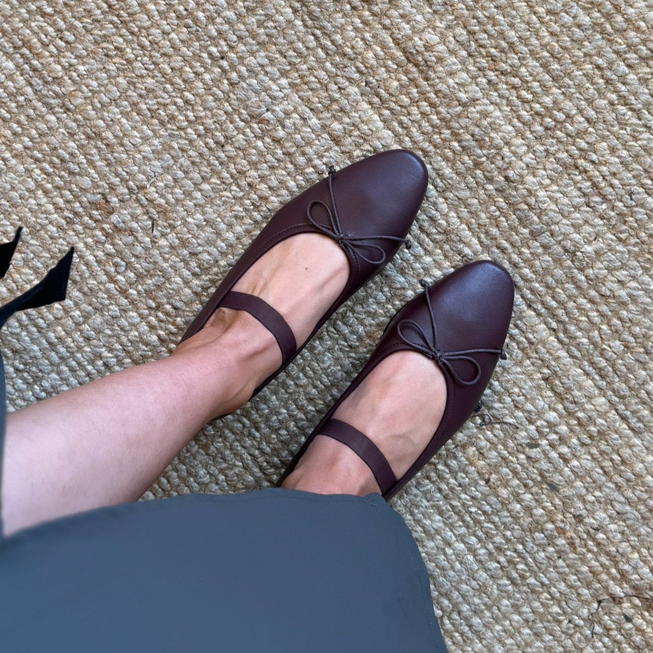 The Como, now with a chic Mary Jane strap that adds to that feminine look. Our new ballerina flat, has a longer toe box and a slim shape that elongate the legs to perfection. The low stacked heel is comfortable for everyday wear, and a cotton bow complements the delicate touch.