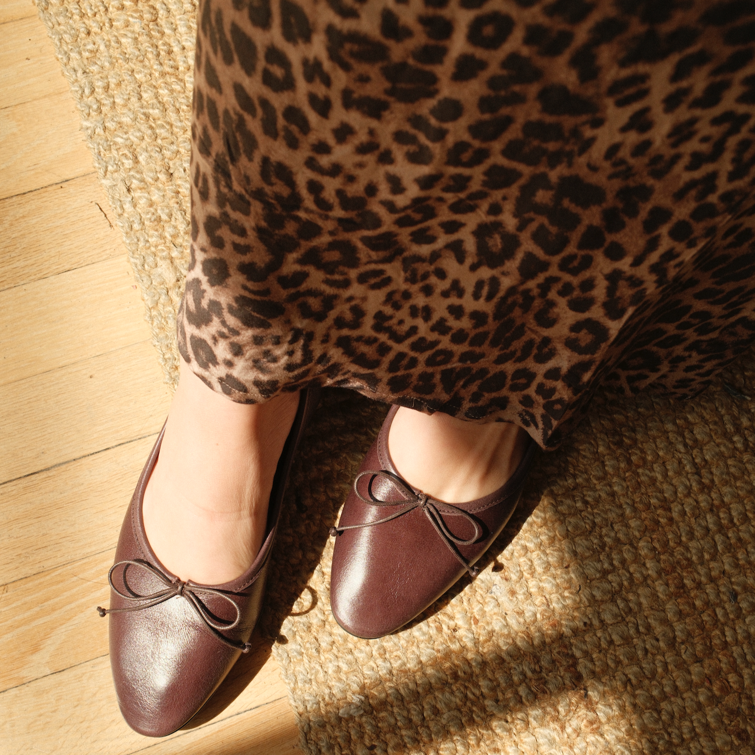 The Como, our classic ballerina flat, has a longer toe box and a slim shape that elongate the legs to perfection. The low stacked heel is comfortable for everyday wear, and a cotton bow adds a pretty, feminine touch.