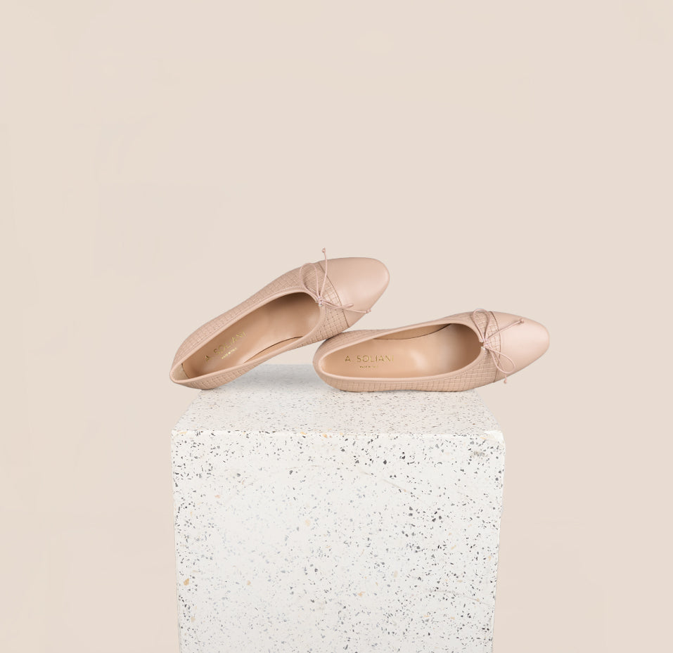 The Como, our classic ballerina flat, has a longer toe box and a slim shape that elongates the legs to perfection. The low-stacked heel is comfortable for everyday wear, and a cotton bow adds a pretty, feminine touch.
