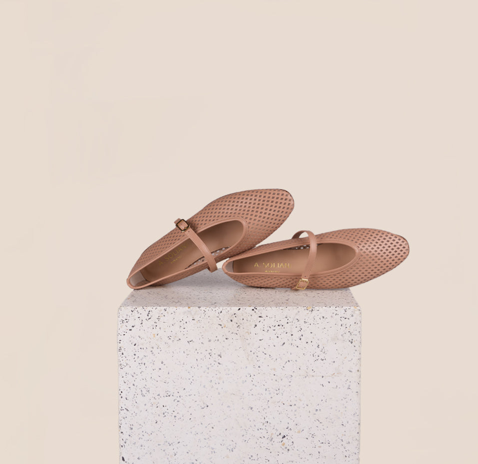 The Cori Rete offers the same graceful shape in a perforated nappa version, providing a breathable and lightweight feel, perfect for warmer days.