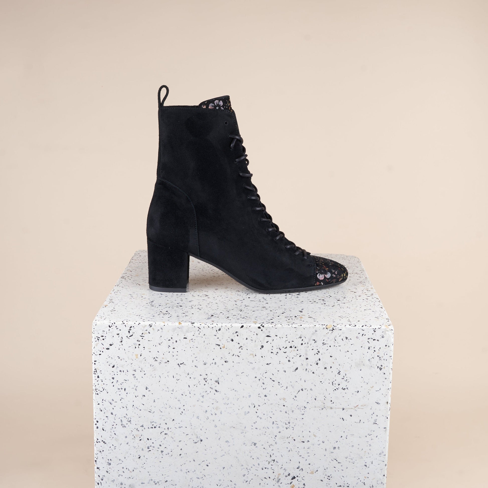 Venezia - Black Suede/Floral SAMPLE SALE - FINAL SALE