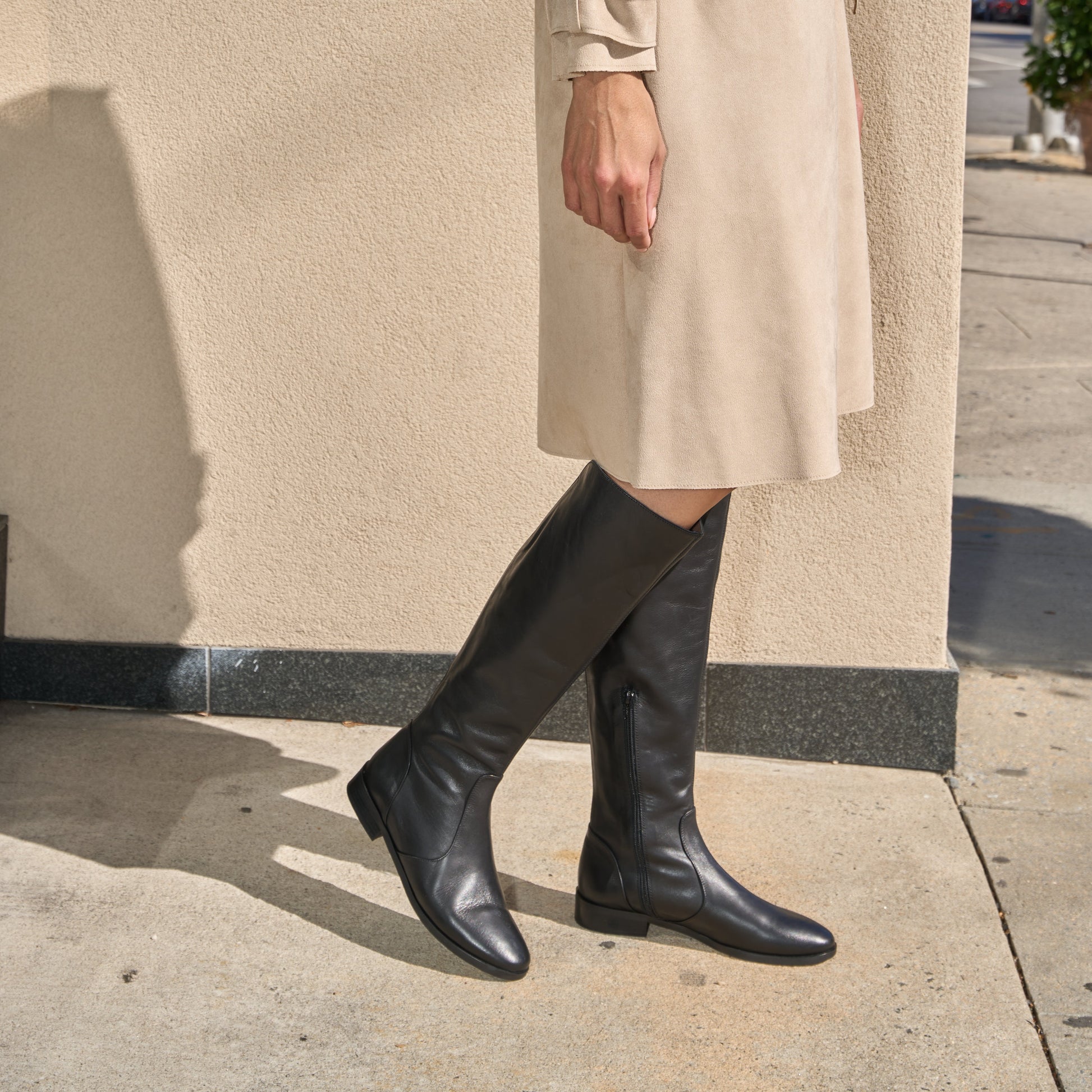 Introducing our exquisite Italian riding boot, a symbol of elegance and versatility. Crafted with precision and attention to detail, this tall boot boasts a unique feature: an elastic insert at the back, ensuring a perfect fit for all calf sizes. Choose from a palette of three captivating calf colors to match your personal taste. The boot's almond-shaped toe not only offers a touch of sophistication but also elongates the appearance of your feet, making it the perfect addition to your wardrobe.Elevate your equestrian fashion with this remarkable riding boot.